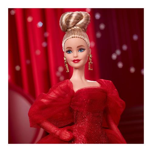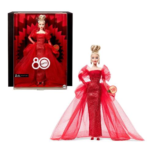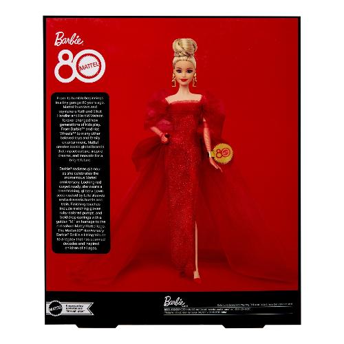 In onore dell'ottantesimo anniversario di Mattel, questa bambola Barbie indossa un bellissimo abito per celebrare l'occasione con uno stile mozzafiato! Barbie è avvolta nel colore distintivo di Mattel: rosso. Con una silhouette mozzafiato, grazie alle sue maniche e alla gonna in tulle voluminose, è bellissima e affascinante! I suoi orecchini a goccia "M" e il colore nero delle unghie richiamano il classico logo Matty Mattel, mentre i guanti rossi, il rossetto e le scarpe col tacco aggiungono un tocco finale al suo bellissimo look. Esplora la linea Barbie Signature e la collezione per l'80° anniversario di Mattel per scoprire altri ricordi e regali per gli anni a venire.