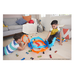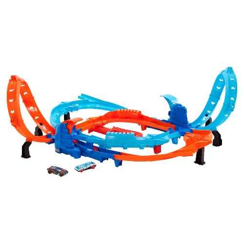 Lanciati in corse testa a testa, acrobazie e scontri con Ultra Hots Sfida Turbo Lanci. I bambini e le bambine possono lanciare simultaneamente due macchinine Hot Wheels nei due tubi, lungo due loop e poi attraverso due zone di scontro: eviteranno lo scontro o si schianteranno? Il set si piega per riporlo facilmente e include una maniglia per un facile trasporto. Gareggia di nuovo o collegalo ad altri set per vivere avventure infinite. Include due macchinine Hot Wheels in scala 1:64.