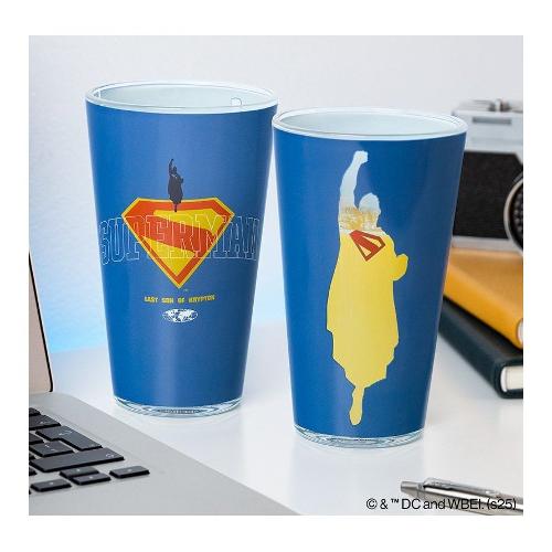 Il bicchiere presenta un design avvolgente blu che raffigura il supereroe mentre si lancia per la sua prossima missione. L'iconica silhouette di Superman con il mantello è ritagliata, permettendo alla tua bevanda preferita di dare vita al design.