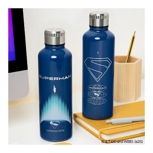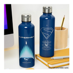 La bottiglia termica riutilizzabile in acciaio inossidabile da 500 ml (16 fl oz) è dotata di tappo a vite. Presenta un design blu raffigurante Superman in volo. Perfetta per quando sei in giro, mantiene la tua bevanda calda o fredda più a lungo.