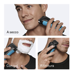Il rasoio elettrico barba Braun Series 3+ è dotato di 2 elementi di rasatura a lamina e 1 rifinitore centrale per radere i peli più lunghi. Le lame flessibili si adattano ai tuoi contorni per una rasatura facile su qualsiasi area del tuo viso. L'accessorio regolabarba è pensato per regolare la barba a diverse lunghezze con 5 pettini da 1, 2, 3, 5 e 7 mm e ha una testina di rasatura sottile per una rasatura facile anche nelle aree difficili da raggiungere.