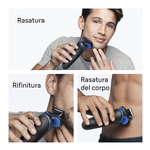 Le tre lame flessibili si adattano per seguire comodamente i contorni del viso. Porta la tua routine di rasatura al livello successivo con gli accessori rifinitore corpo e regolabarba
