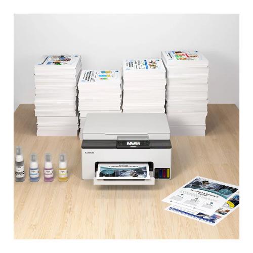 Compatta, sicura e intuitiva, questa stampante 3 in 1 offre un'esperienza d'ufficio completa anche alle persone che lavorano da casa o in modalità ibrida. MAXIFY GX1050 è una stampante business ideale per uso domestico, dotata di funzionalità di stampa, copia e scansione, in grado di stampare volumi elevati di documenti duraturi in modo rapido e senza sbavature, e persino di inviare l'output della scansione direttamente a una casella e-mail o a una cartella di rete condivisa. Come tutti i modelli Canon MegaTank, i serbatoi di inchiostro singoli ricaricabili contribuiscono a mantenere bassi i costi di gestione, mentre il touch screen LCD inclinabile da 2,7 pollici rende piacevole l'uso di questa stampante per uffici di piccole dimensioni.