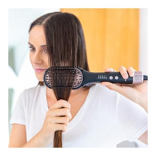Spazzola lisciante ad aria calda. Proteggi i tuoi capelli mentre li stiri grazie al rivestimento in ceramica della spazzola che scivola dolcemente tra i capelli, prevenendone la rottura.