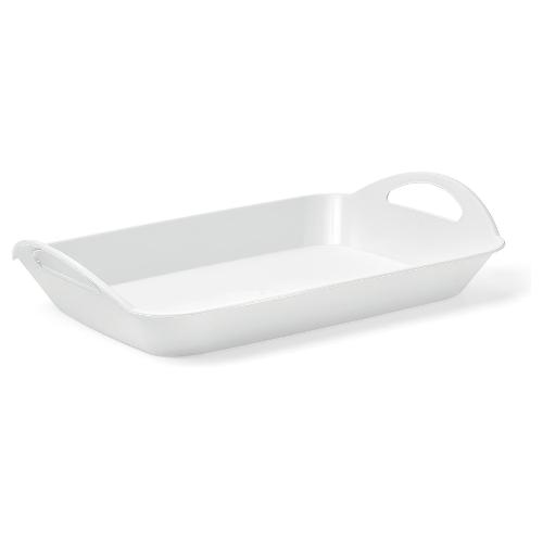 Vassoio dotato di pratica impugnatura. I manici ergonomici garantiscono una presa sicura e confortevole, rendendo ogni spostamento semplice e privo di sforzi. La sua superficie ampia e piana offre spazio sufficiente per un assortimento di piatti, permettendo di presentarli con stile.