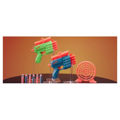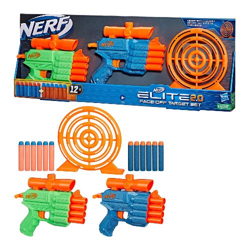 NERF Elite 2.0 Face Off Target Set è la ricetta perfetta per un pomeriggio di azione, risate e sfide epiche! Che tu voglia affinare la mira o dichiarare guerra al tuo migliore amico (in modo amichevole, si intende), questo set ha tutto ciò che serve: 2 blaster Elite 2.0 per una vera battaglia da fuoriclasse