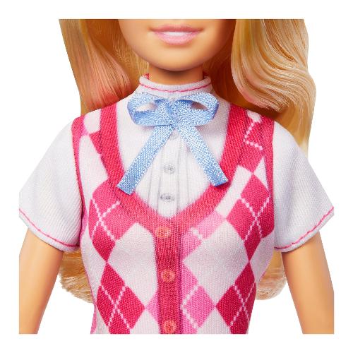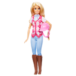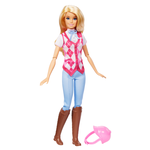 Barbie 'Malibu' è pronta per avventure a cavallo! Con un elegante outfit da equitazione, è ispirata al personaggio della serie Netflix, Barbie Mysteries: The Great Horse Chase. Questa bambola alla moda indossa una camicia e un gilet rimovibili, pantaloni, stivali e caschetto. Inoltre, ha articolazioni che si piegano all'altezza di gomiti, polsi e ginocchia per un gioco di cavalcate realistico! La bambola non può reggersi in piedi da sola.
