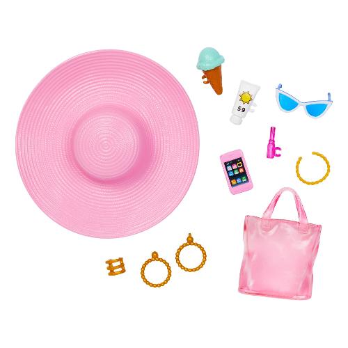 Rilassati in spiaggia con questa bambola Barbie! Il suo bellissimo costume e gli accessori a tema ispireranno bambini e bambine a creare tante storie estive diverse sotto il sole. Barbie indossa un costume da bagno rosa e bianco a righe con un pareo a pois trasparente legato in vita. Gli orecchini a cerchio dorati e i sandali a punta aperta aggiungono un tocco extra! Gli accessori aggiuntivi per lo styling includono un cappello da sole a tesa larga, occhiali da sole da gatto, una collana dorata e un bracciale coordinato. La sua tote rosa è perfetta per portare la crema solare, il rossetto e lo smartphone; il gelato al gusto menta le sta in mano per una posa realistica. Questa bambola Barbie da spiaggia è un regalo unico per chi ama la vita da mare e la moda!