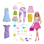 Chi non ama rinnovare il guardaroba? Questo set Barbie® alla moda include oltre 25 capi di abbigliamento e accessori, che i bambini possono scambiare e abbinare per creare look infiniti! Dotata di una fotocamera, quattro borse diverse, occhiali da sole trendy e una cintura con cactus, questa bambola Barbie® bionda è pronta per ogni occasione! I tessuti sono colorati e piacevoli come le caramelle! Un abito con lecca-lecca stampati e una gonna con zuccherini stampati aggiungono un tocco sbarazzino e si abbinano perfettamente con gli indumenti floreali, a righe, tie-dye e a tinta unita inclusi. Barbie® esprime la sua personalità attraverso gli accessori! Collane di tendenza, braccialetti, cerchietti e varie paia di scarpe consentono di creare look versatili e sempre diversi. Incoraggia la narrazione a tema e il gioco di ruolo con questa confezione con bambola Barbie® e abiti! Un'idea regalo fantastica per gli appassionati di moda dai 3 anni in su.