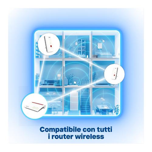 Lavora in perfetta sintonia con un FRITZ!Box o qualsiasi altro router per estendere la connessione Internet in ogni angolo della casa/ufficio, assicurando una copertura completa per tutti i dispositivi.