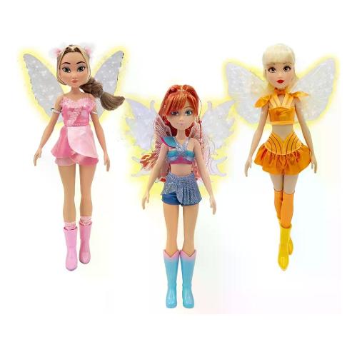 Immergiti nel magico mondo delle Winx con le tue bambole Winx dotate di articolazioni su spalle e ginocchia e con ali rimovibili che possono illuminarsi.