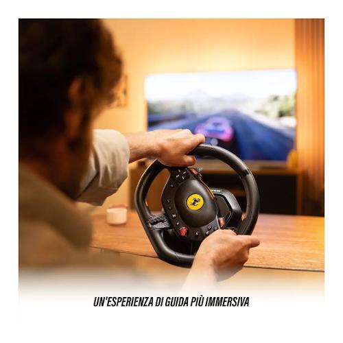 Guida come un vero pilota con questo volante su licenza Ferrari ispirato alla vera Ferrari 296 GTB e immergiti in gare entusiasmanti. La tecnologia di ricentraggio del volante e l'angolo di rotazione di 240° con resistenza lineare consentono un preciso controllo del veicolo, per disegnare traiettorie vincenti e sorpassare i tuoi avversari. La corona del volante e le sue leve del cambio in simil-carbonio garantiscono un'eccellente maneggevolezza, per sensazioni da guida sportiva! La manopola di selezione ispirata all'iconico Manettino Ferrari ti permette di scegliere fra 3 profili di assistenza alla guida (dall'uso più realistico al più semplice) per adattarsi a tutti gli stili di guida, che tu sia un principiante o un pilota esperto.