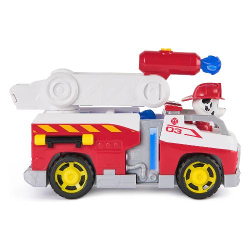 Unisciti alla squadra di soccorso antincendio PAW Patrol con Marshall e il suo Camion dei Pompieri ricco di azione. Questo camion giocattolo PAW Patrol misura 20,3 cm di lunghezza e 12,7 cm di altezza ed è pronto a correre in soccorso in qualsiasi avventura di fantasia. Marshall, alto più di 5 cm con la sua uniforme da vigile del fuoco, è pronto a salvare la situazione. I bambini possono inclinare la scala, lanciare proiettili d'acqua e riporli nei vani integrati per un rapido accesso. Le ruote funzionanti e lo stile autentico PAW Patrol rendono il camion identico a quello del cartone, per stimolare creatività senza fine. Questi giocattoli educativi PAW Patrol sono ottimi per compleanni, Natale o qualsiasi altra festività. Per altro divertimento, combinali con il Centro di comando Fire Rescue, il Camion dei Pompieri a Caricamento Rapido e sei diversi personaggi e veicoli Fire Rescue, per un gioco senza fine (ciascuno in vendita separatamente). Rivivi i momenti molto amati delle stagioni passate di PAW Patrol, come i Super Cuccioli e il film di PAW Patrol, oppure crea nuove avventure con la torre PAW Patrol, le singole action figure PAW Patrol e i rispettivi veicoli PAW Patrol, per avventure adrenaliniche.