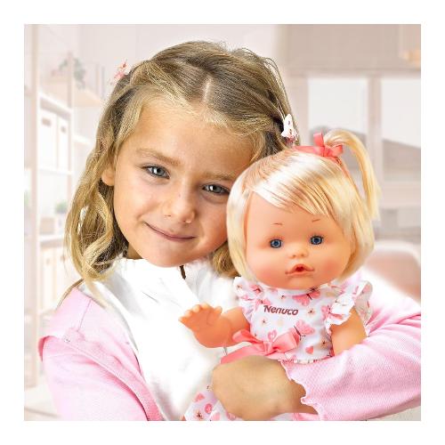 Questa adorabile bambola ha un design realistico con capelli morbidi e facili da pettinare, ideali per creare acconciature diverse mentre accompagni Nenuco nelle sue avventure; indossa un grazioso vestitino decorato con farfalle, abbinato a un fiocco tra i capelli che evidenzia il suo stile allegro e fresco. Dai a Nenuco da bere con il suo biberon e guardalo fare pipì come un vero bambino: un'esperienza di gioco interattiva e realistica.