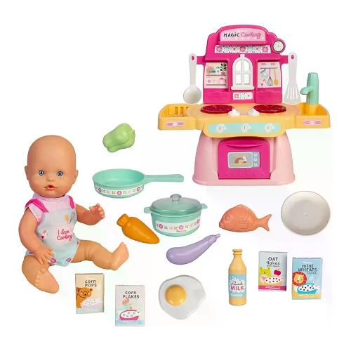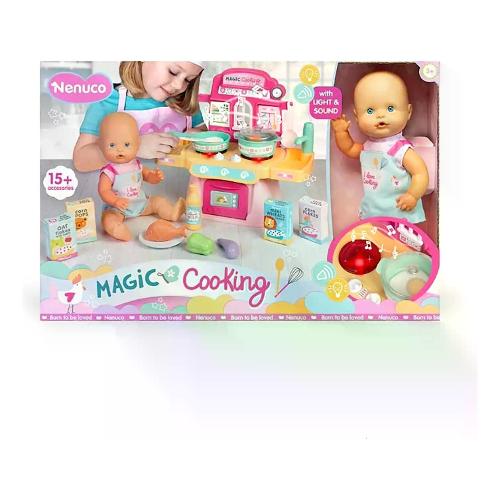 Una bambola Nenuco da 30 cm con corpo rigido e più di 10 accessori. Puoi preparare le tue ricette preferite con tutti gli ingredienti inclusi: padella, pirofila, ecc. E un piccolo piatto per servire le tue creazioni! La cucina è dotata di luci e suoni di bollitura e frittura, per rendere l'esperienza ancora più immersiva e realistica. Nenuco è dotata del suo vestito e grembiule personalizzati.