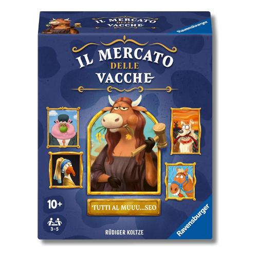 Il Mercato delle Vacche Ravensburger: un gioco da tavolo strategico e divertente per tutta la famiglia. Astuzia, contratti e... tante mucche! Chi farà l'affare migliore al mercato? gioco da tavolo tattico e ironico, perfetto per serate in famiglia o con amici.