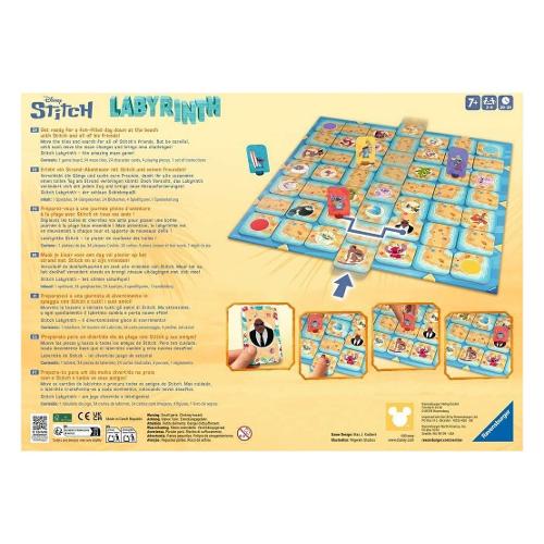 Peaparatevi a una giornata di divertimento in spiaggia con Stitche tutti i suoi amici! Muovete le tessere e cercate tutti gli amici di Stitch. Ma attenzione: a ogni spostamento il labirinto cambia e porta nuove sfide! Contenuto: 1 tabellone: 34 tessere del labirinto: 24 carte personaggio, 4 pedine, istruzioni