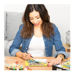 Ogni confezione contiene tutto il necessario per dipingere un bellissimo quadro e una cornice per poter appendere il proprio lavoro una volta terminato il lavoro.