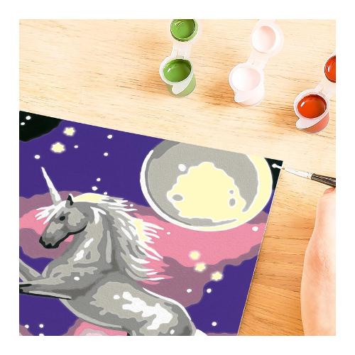 Con creart i bambini dipingono attraverso una tavola prestampata, seguendo i numeri e i bordi colorati riescono a riempire gli spazi con i colori corrispondenti e realizzare la loro opera d’arte. I colori a base d'acqua sono pronti per l'uso e non necessitano alcun solvente. I barattoli di colori sono richiudibili singolarmente per evitare che si secchino. Per facilitare l'attività, viene fornito una tavolozza di cartone dove inserire i barattolini per evitare che si rovescino. Ogni confezione contiene tutto il necessario per dipingere un bellissimo quadro e una cornice per poter appendere il proprio lavoro una volta terminato il lavoro. Atttività rilassante che esercita la manualità fine e la concentrazione e garantisce un risultato impeccabile, che da grande soddisfazione a tutti i piccoli artisti!