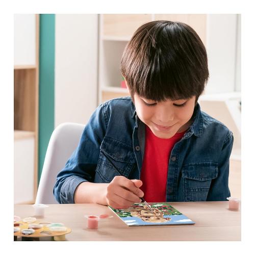 Con creart i bambini dipingono attraverso una tavola prestampata, seguendo i numeri e i bordi colorati riescono a riempire gli spazi con i colori corrispondenti e realizzare la loro opera d’arte. I colori a base d'acqua sono pronti per l'uso e non necessitano alcun solvente. I barattoli di colori sono richiudibili singolarmente per evitare che si secchino. Per facilitare l'attività, viene fornito una tavolozza di cartone dove inserire i barattolini per evitare che si rovescino. Ogni confezione contiene tutto il necessario per dipingere un bellissimo quadro e una cornice per poter appendere il proprio lavoro una volta terminato il lavoro. Atttività rilassante che esercita la manualità fine e la concentrazione e garantisce un risultato impeccabile, che da grande soddisfazione a tutti i piccoli artisti!