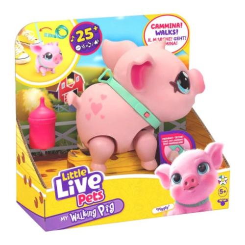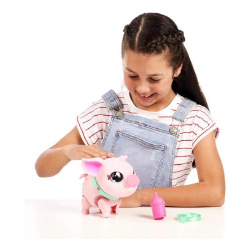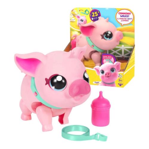Oink oink, è arrivata Piggly! Con oltre 25 suoni e reazioni, Piggly si muove e fa versi proprio come un vero maialino. Dalle da mangiare con il biberon e coccolala, Piggly ne sarà felicissima! Se la prendi in