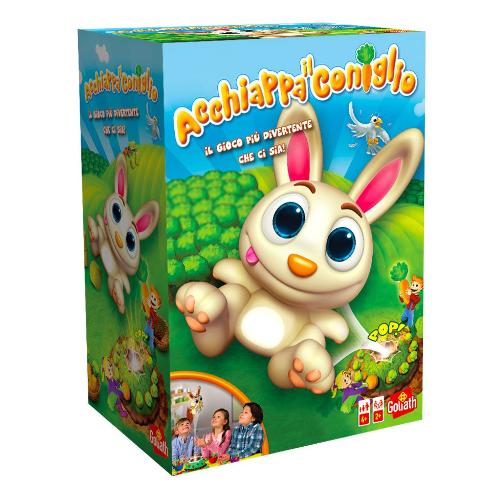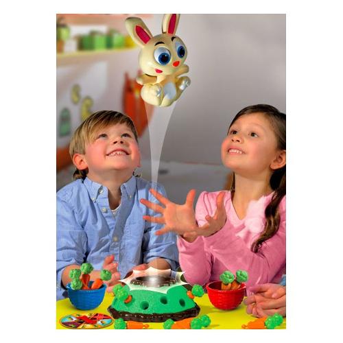Tranquillamente seduto in cima alla sua tana, il nostro coniglietto ammira il suo campo di carote! Estrai le carote, ma fai attenzione a non spaventarlo! Rimani concentrato per essere pronto ad afferrarlo appena tenta di scappare! Acchiappa il coniglio è un gioco di società e di azione (action game) che stimola i riflessi del tuo bambino o della tua bambina, inoltre insegna i numeri, il conteggio e i colori. La confezione contiene: 1 Base di gioco (Tana), 1 Coniglio, 12 Carote, 1 Ruota con caselle di selezione attività, 4 Cestini colorati, 1 Manuale di istruzioni.