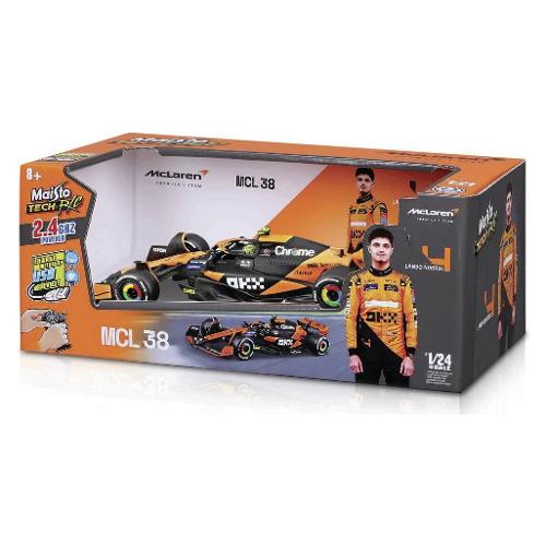 Con la veloce F1 McLaren (2024) della serie da corsa Maisto Tech R/C, sia i grandi che i piccoli appassionati di sport motoristici troveranno pane per i loro denti; ha un telecomando con impugnatura a pistola facile da usare, una frequenza di 2,4 GHz e una portata di circa 35 m. L'auto può essere facilmente guidata, con i suoi circa 8 km/h, dai piloti di Formula 1 a partire da 8 anni. Fornita con batterie e cavo USB (1 batteria ricaricabile al litio per il veicolo e 2 batterie AAA per il telecomando).