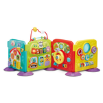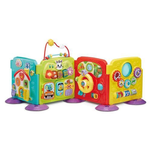 4 modalità di gioco! Con le sue configurazioni versatili (cubo, zigzag, semicerchio o pannelli indipendenti), offre grande libertà di gioco. Il bambino esplora numeri, colori, forme e animali attraverso pulsanti luminosi, un libro interattivo, un telefono, un volante, un gioco di incastri, ingranaggi e molto altro.