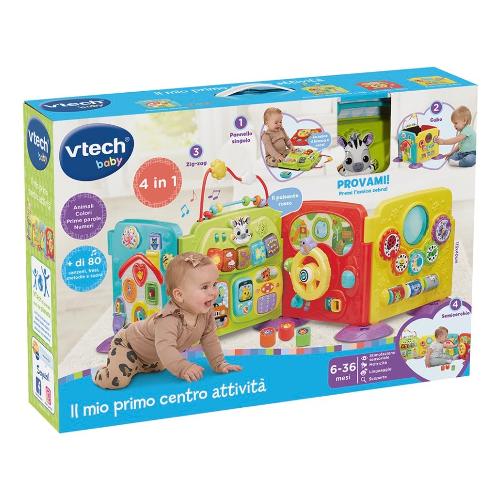 Il mio primo centro attività è progettato per stimolare la motricità, il linguaggio e la curiosità dei bambini a partire dai 6 mesi. Grazie ai suoi 4 pannelli tematici e ai numerosi elementi da manipolare, questo giocattolo ricco e colorato accompagna il bambino nelle sue prime scoperte, adattandosi alla sua crescita.