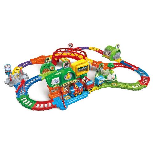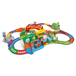 Avventure in treno! Un grande circuito interattivo pensato per bambini da 1 a 5 anni, con un trenino motorizzato che parla, canta e attiva suoni passando attraverso 6 zone magiche. Grazie alle 5 configurazioni di montaggio possibili, il bambino esplora un mondo completo composto da una stazione, una foresta, un tunnel, un passaggio a livello, una fattoria e un ponte.