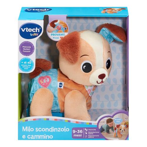 Milo si muove autonomamente e cammina a quattro zampe stimolando la curiosità e le capacità motorie del bambino.