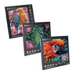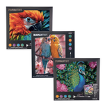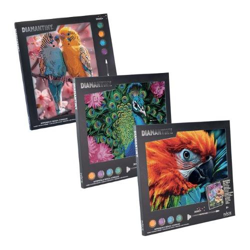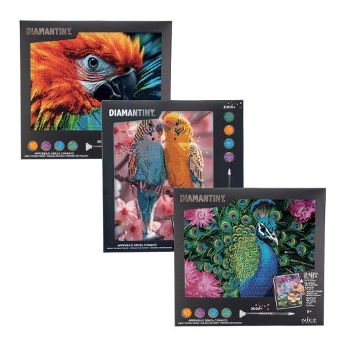 Include 1 quadretto di formato A4, cristalli colorati, 1 vassoio raccoglitore, una penna applicatore, istruzioni.