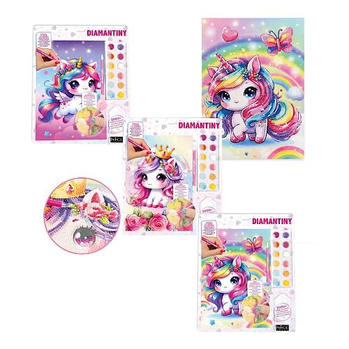Include 1 quadretto di formato A4, cristalli colorati, 1 vassoio raccoglitore, una penna applicatore, istruzioni.