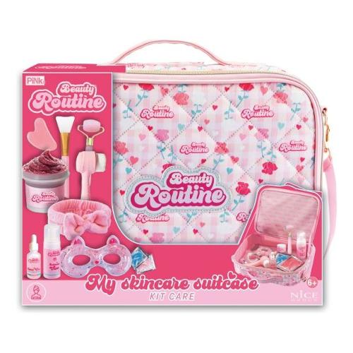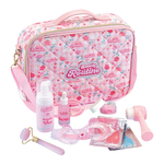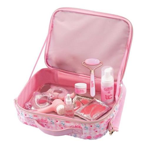 Valigetta di tessuto morbidio con motivo a fiori. Contiene: fascia per capelli, 3 patch occhi, crema idratante, sapone detergente, spazzola massaggiante per il viso, spatola di silicone, maschera viso,