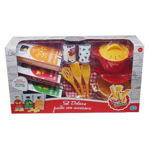 Set Pasta Lovers 13 pz: 3 pacchetti di pasta (tortelli e farfalle), 3 mestoli, presine, scolapasta, pentola con coperchio, 2 barattoli di sugo
