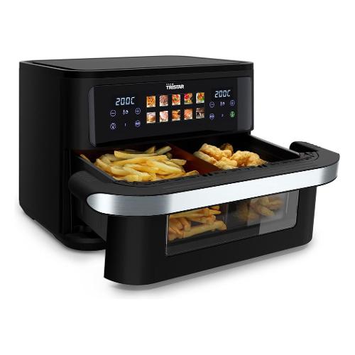 Con la Tristar FR-9078 Dualzone Flex, puoi preparare facilmente due piatti diversi allo stesso tempo grazie al pratico divisore nel grande cestello da 10L