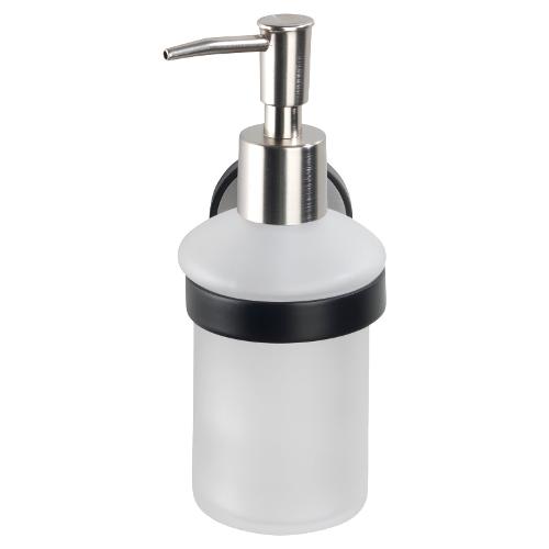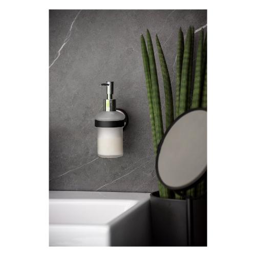 Gli accessori della linea bagno UV-Loc® Udine trasformano la stanza da bagno in un vero luogo del benessere. Il design urbano e alla moda dell’accessorio utile per bagno è una combinazione di acciaio spazzolato e laccato nero opaco. Il pratico supporto a parete con dosatore di sapone è realizzato in acciaio inossidabile di qualità e conferisce al bagno un’eleganza versatile. Il dispenser amovibile è realizzato in vetro satinato e può essere riempito con 200 ml di sapone liquido.