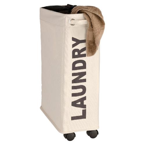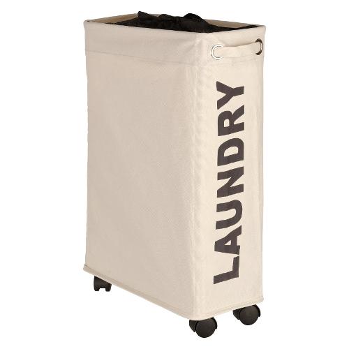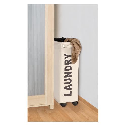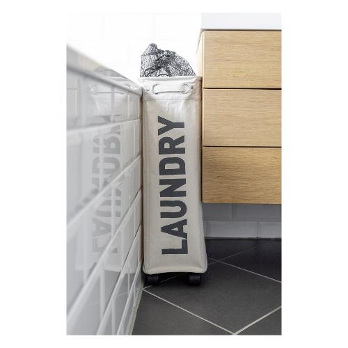 Cosa fare con i numerosi angoli inutilizzati? Grazie al portabiancheria Corno di colore beige, anche gli spazi vuoti vicino agli armadi o agli scaffali possono essere utilizzati subito in maniera eccellente. Il sottile portabiancheria salvaspazio è realizzato in poliestere di alta qualità ed è trasportabile senza problemi grazie alle sue quattro ruote. Grazie al paravista può tenere efficacemente nascosta la biancheria sporca. In questo modo nicchie e angoli diventano un pratico spazio utilizzabile. Il portabiancheria Corno di colore beige ha una capienza di 43 litri. Il portabiancheria è un oggetto che si fa notare grazie alla scritta LAUNDRY.