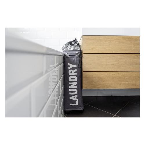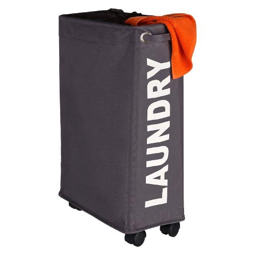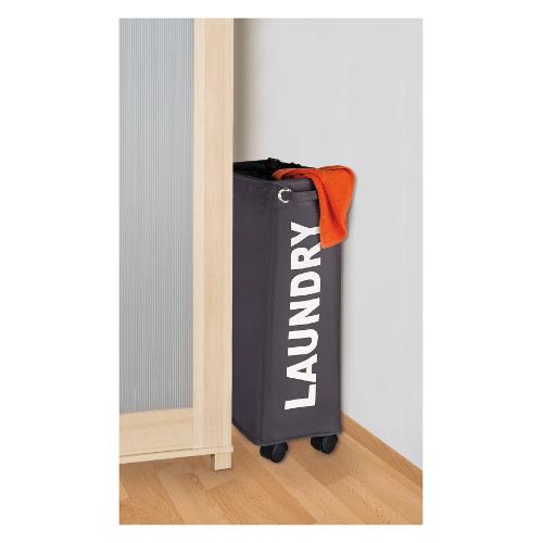 Il sottile portabiancheria salvaspazio è realizzato in poliestere di alta qualità ed è trasportabile senza problemi grazie alle sue quattro ruote. Grazie al paravista può tenere efficacemente nascosta la biancheria sporca. In questo modo nicchie e angoli diventano un pratico spazio utilizzabile.