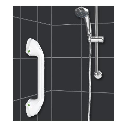 La maniglia da muro è realizzata in robusta plastica di alta qualità e può essere fissata e rimossa semplicemente e senza complicazioni premendo il disco a ventosa e azionando la leva. Ha un utilizzo ergonomico in quanto la maniglia può essere ruotata di 180°.