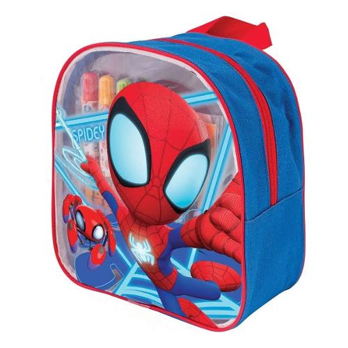 Spiderman e i cattivi del tuo film preferito di Spiderman ti aspettano per disegnare insieme, ovunque tu sia. Porta con te questo zaino elegante e alla moda durante le tue passeggiate, in macchina, durante le tue escursioni e disegna il tuo eroe preferito e le sue scene d'azione usando pastelli e pennarelli. Poi rendi i tuoi disegni ancora più spettacolari aggiungendo gli adesivi che troverai nello zaino.