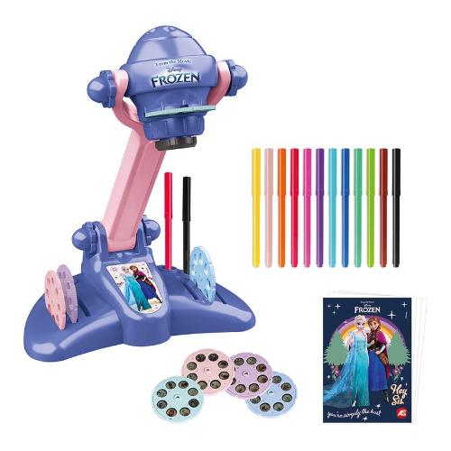 Usa il magico proiettore per dipingere e crea disegni unici con i tuoi personaggi preferiti del film Frozen! Proietta l'immagine, traccia i contorni e colorala per creare la tua collezione di creazioni Frozen!