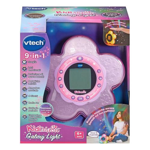 Perfetto per il comodino KidiMagic Galaxy Light è un grazioso fiore colorato ricco di funzionalità! Magico e rilassante, aiuta il tuo bambino ad addormentarsi sotto un cielo di aurore boreali proiettate sul soffitto. La sveglia parlante lo accompagna dolcemente nel risveglio! Grazie alla radio FM e alla connessione audio, può ascoltare la sua musica preferita collegando un lettore MP3 tramite cavo audio jack.