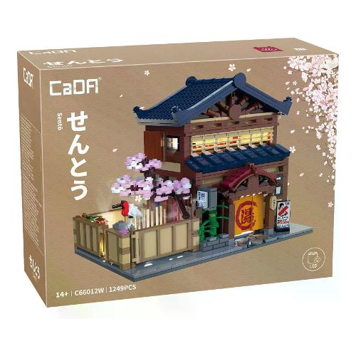 Un modello in mattoni autocostruibile di un tradizionale stabilimento balneare giapponese, con parete posteriore apribile per rivelare interni dettagliati. Il primo piano può essere staccato per un facile accesso. Il modello è progettato con spazi integrati per l'illuminazione a LED, per creare un'atmosfera accogliente all'interno.
