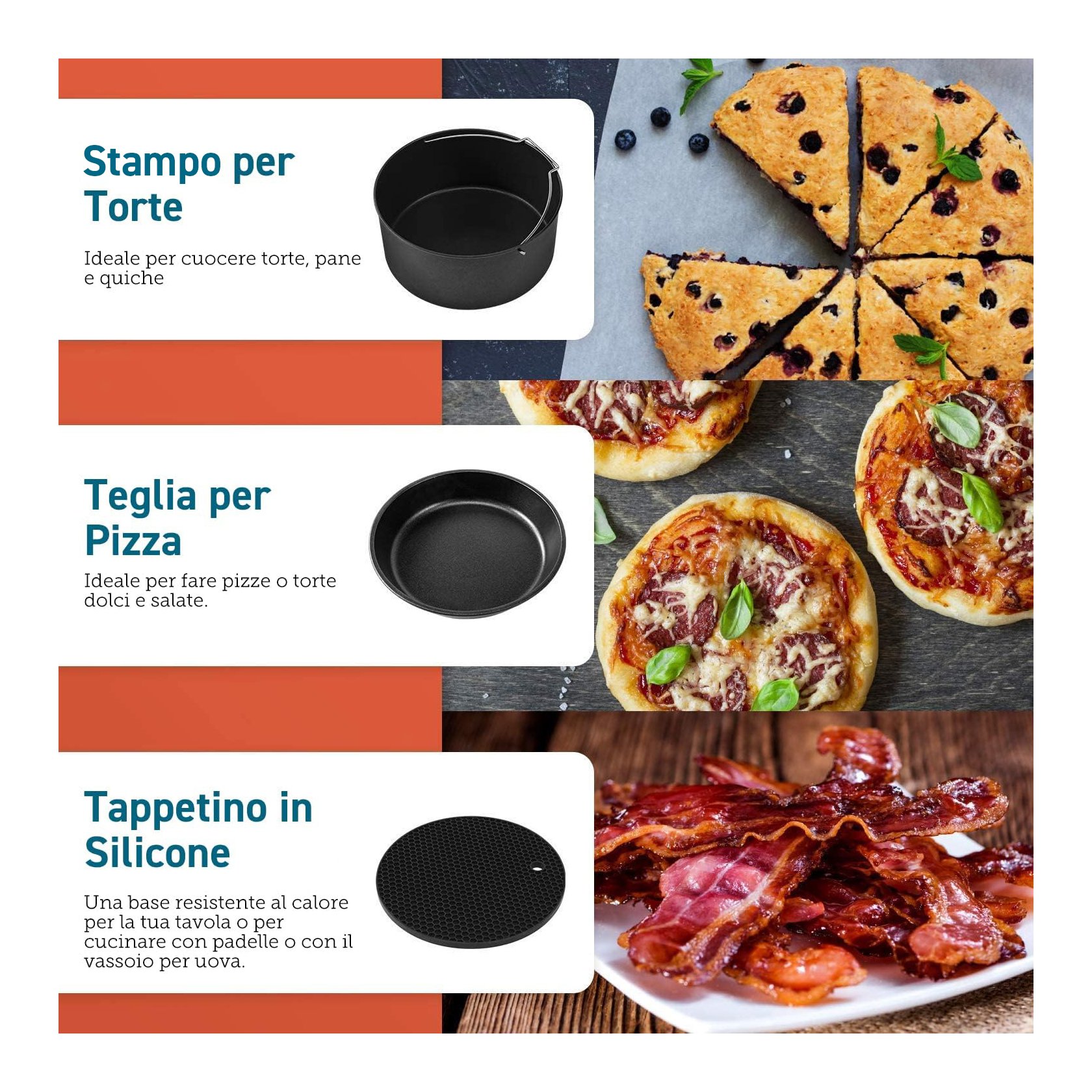 Il set di accessori COSORI è il complemento perfetto per la tua friggitrice ad aria da 5,5 litri e più. Include tutto ciò di cui hai bisogno per ampliare le possibilità in cucina: cuoci torte, pizze, muffin o carne alla griglia con facilità. Realizzati con materiali di qualità alimentare e resistenti al calore, gli accessori sono lavabili in lavastoviglie per una pulizia senza stress. Ideale per chi vuole sfruttare al massimo ogni funzione della propria air fryer.