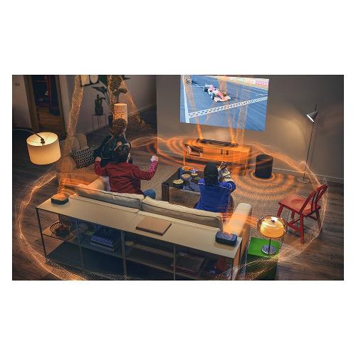 Non è mai stato così facile immergersi in un vero suono surround. Basta sollevare gli altoparlanti surround rimovibili dalla soundbar e posizionarli dietro di te nella stanza per un vero suono surround.