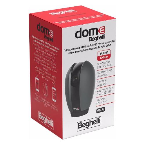 Videocamera Motion FullHD che si controlla dallo smartphone tramite la rete Wi-fi, rotazione orizzontale e verticale comandabile tramite App Dom-e.