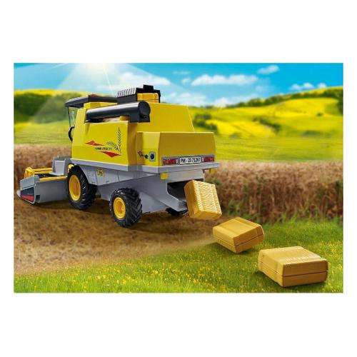 Il veicolo agricolo giallo è dotato di parti mobili e cabina apribile, così il personaggio può sedersi al volante. Lavorare in fattoria avvicina la vita alla natura. Il contadino si alza all'alba per andare nei campi a raccogliere il grano. Metti le balle di fieno nella mangiatoia e queste cadono dal retro della mietitrebbia mentre guidi, proprio come durante una vera mietitura!