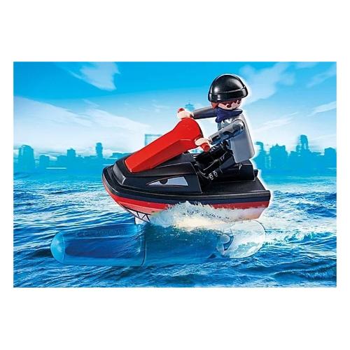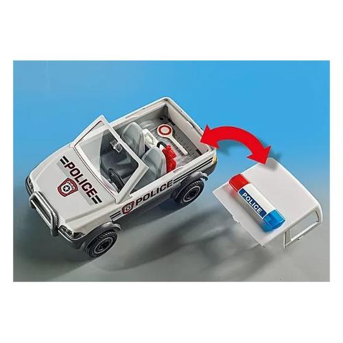 Ora i ladri stanno scappando sulla loro motocross. Improvvisamente scende dalla strada e guida campo attraverso la foresta. Ma anche il terreno montuoso e accidentato non rappresenta un problema per il coraggioso poliziotto nel suo campo di polizia. Supera senza sforzo tutti gli ostacoli e sorprende l'autore del reato quando cerca di nascondere le merci rubate in un bagagliaio cavo. Credo che non abbia funzionato! Il set da gioco contiene due personaggi PLAYMOBIL per motocross, un tuttofare della polizia, un albero cavo, una puzzola, monete d'oro, pistole e molti altri extra. City Action, veicolo della polizia fuoristrada: caccia il ladro di tesori per emozionanti inseguimenti su terreni accidentati. Il tuttofare della polizia insegue il ladro sulla sua Dirt Bike fino al nascondiglio segreto del tesoro.