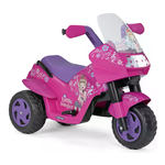 La moto elettrica con luci, suoni e melodie, un clacson e tutta la sicurezza dei materiali italiani. Batteria con jack ricaricabile da 6V, 1 ruota motrice , 1 velocità di marcia avanti (3,9 km/h) con acceleratore e freno in un unico pedale.